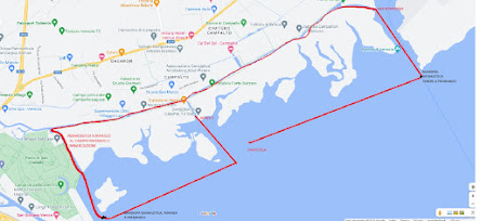 Il percorso è "libero", senza obbligatoriamente stare in canale, circumnavigando le 2 "ceste", fronte Isola Campalto e S.Secondo, "lasciandole" sempre alla propria sinistra, percorrendo sempre la via più breve (ricordateVi che in andata la marea è a favore e corre di piu' in canale che in secca), rispettando sempre l'avversario a lato e fronte.